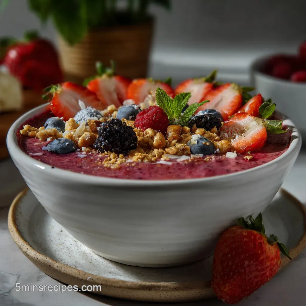 Mornings in my house are basically a controlled circus, and if I don't have something quick, I usually end up eating my kids' leftover toast crusts. This post provides a quick and delicious recipe for a 5 Minute Smoothie Bowl with Mixed Berries.