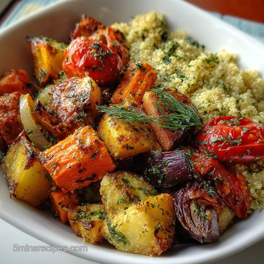 - Combine and serve. Toss the roasted vegetables with the quinoa, discarding the rosemary stems.