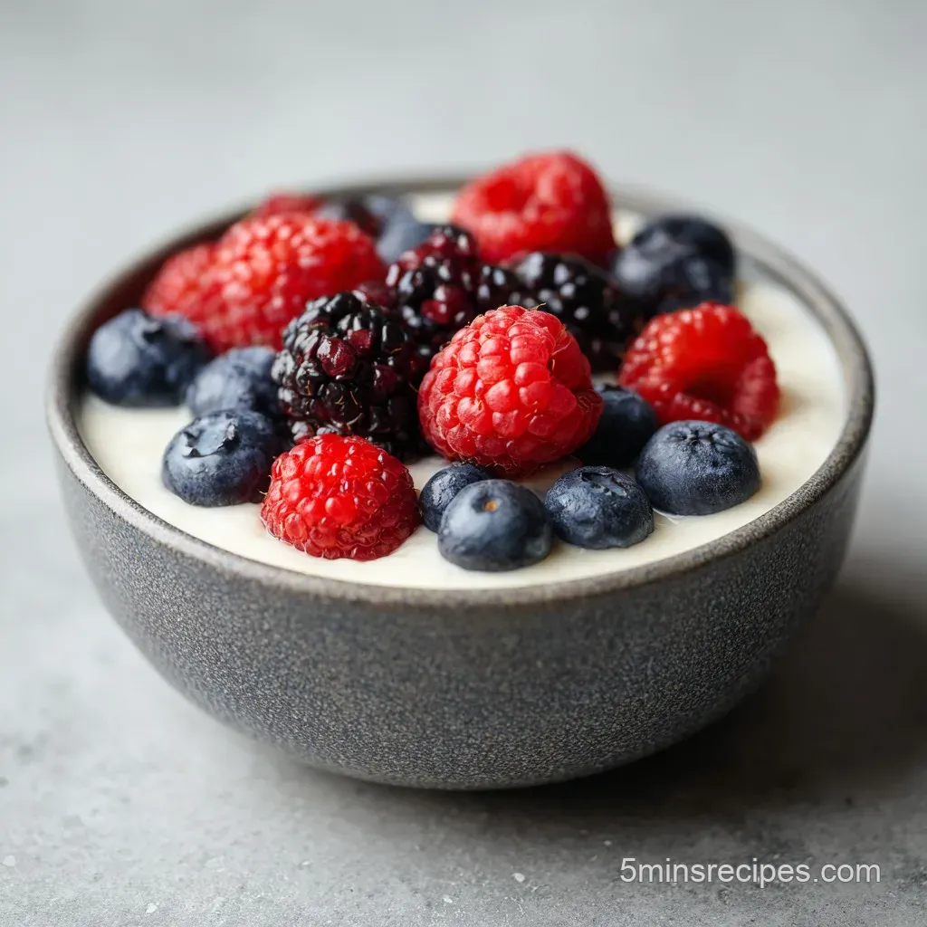Prepare this Greek yogurt bowl by whipping the yogurt for 30 seconds and macerating the berries. If you enjoyed learning how to achieve that light, airy consistency, you might also like testing your skills with our creamy fruit dip, which uses similar aeration techniques to improve texture.